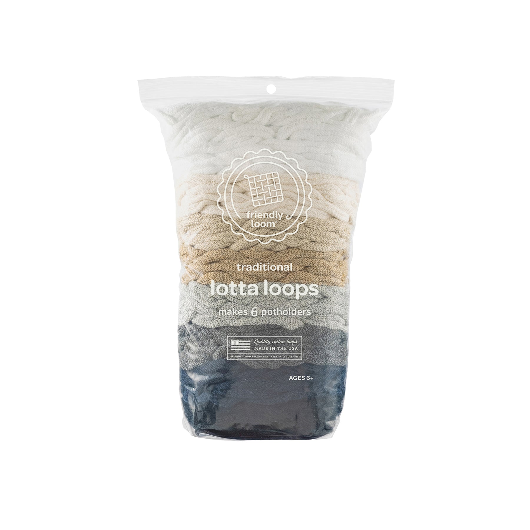 This pack makes up to 6 potholders on the 7”x 7” Traditional Loom. Each pack contains custom-sized cotton loops, meticulously crafted to fit perfectly on our loom. Made in the USA, we take great pride in the quality of our loops, and we're confident that you'll find them to be the best available.