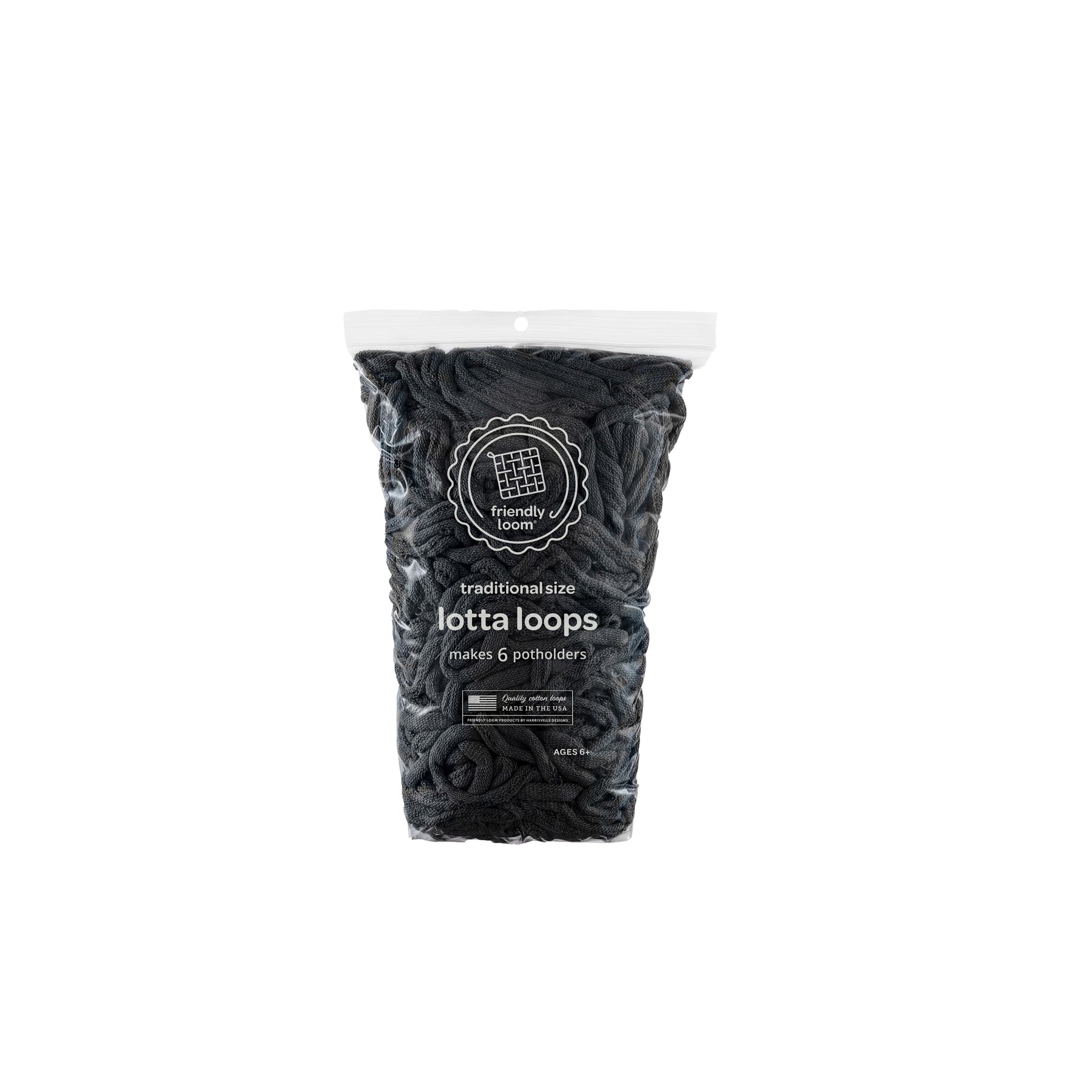 This pack makes up to 6 potholders on the 7”x 7” Traditional Loom. Each pack contains custom-sized cotton loops, meticulously crafted to fit perfectly on our loom. Made in the USA, we take great pride in the quality of our loops, and we're confident that you'll find them to be the best available.