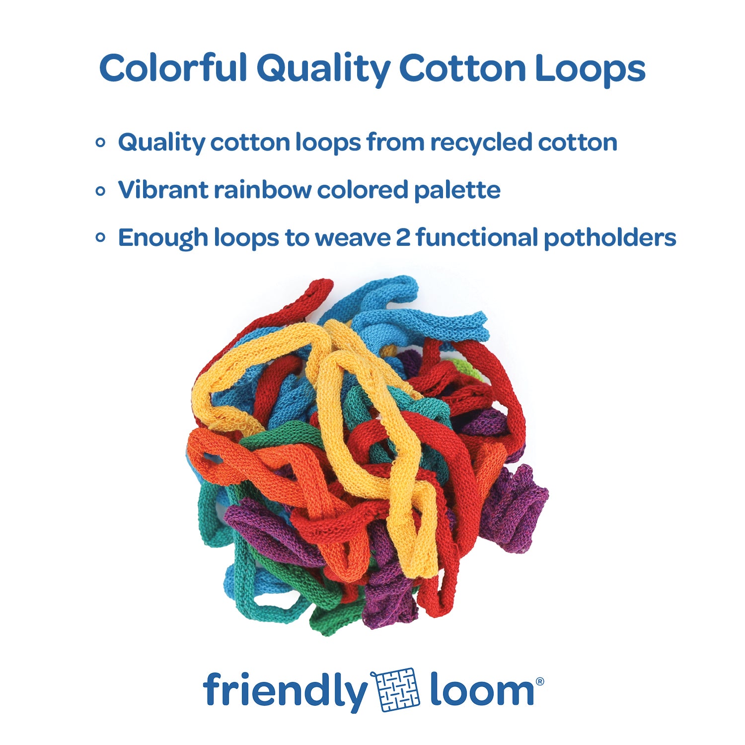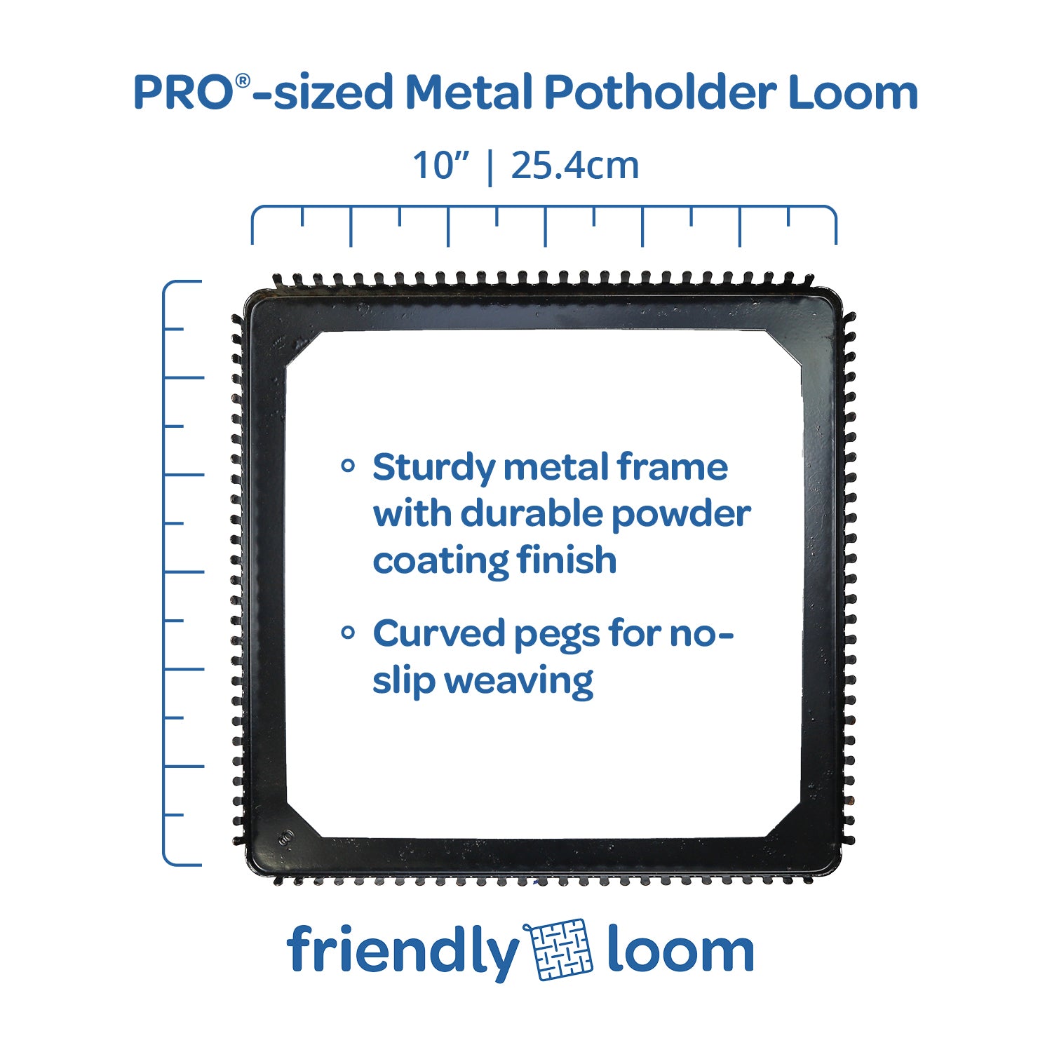 Our PRO Loom Kit makes two 8" x 8" potholders, crafted with a sturdy, uniquely sized metal loom and quality cotton loops in an array of vibrant colors. This timeless craft is perfect for crafters of all ages, offering a fun and creative way to enhance fine motor skills while weaving. Dive into a world of creativity with illustrated instructions and a variety of pattern ideas to inspire your projects!