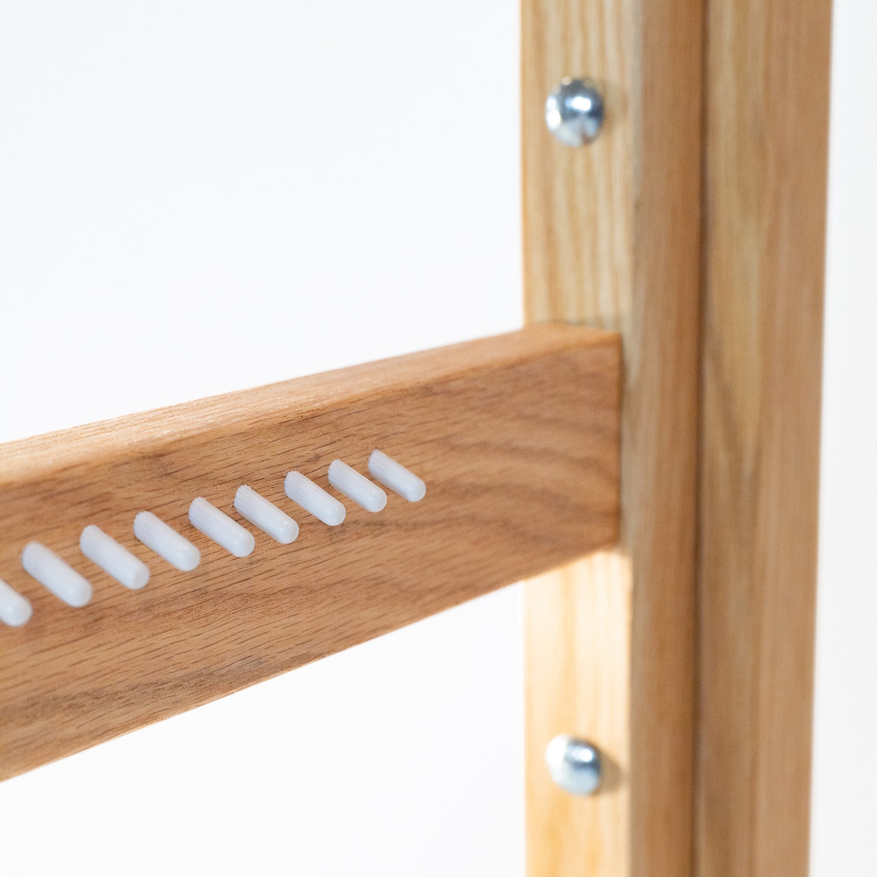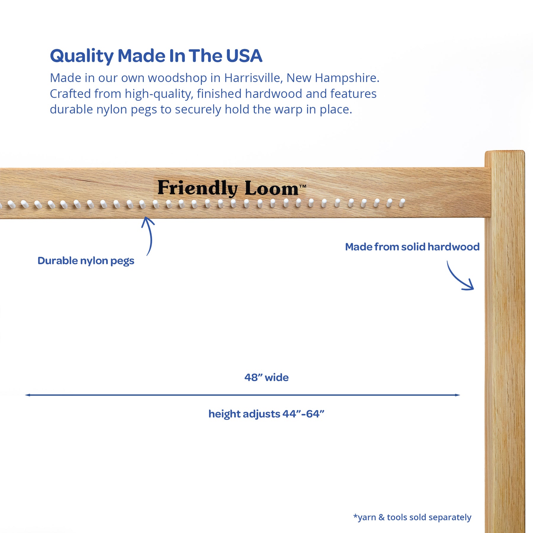 Crafted from high-quality, finished hardwood and features durable nylon pegs to securely hold the warp in place.
